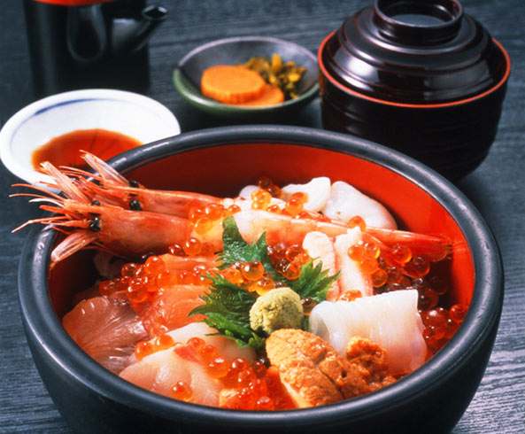 ![]() "KANI EBI DON" crab and raw shrimp on rice, with soup ¥2,200 |